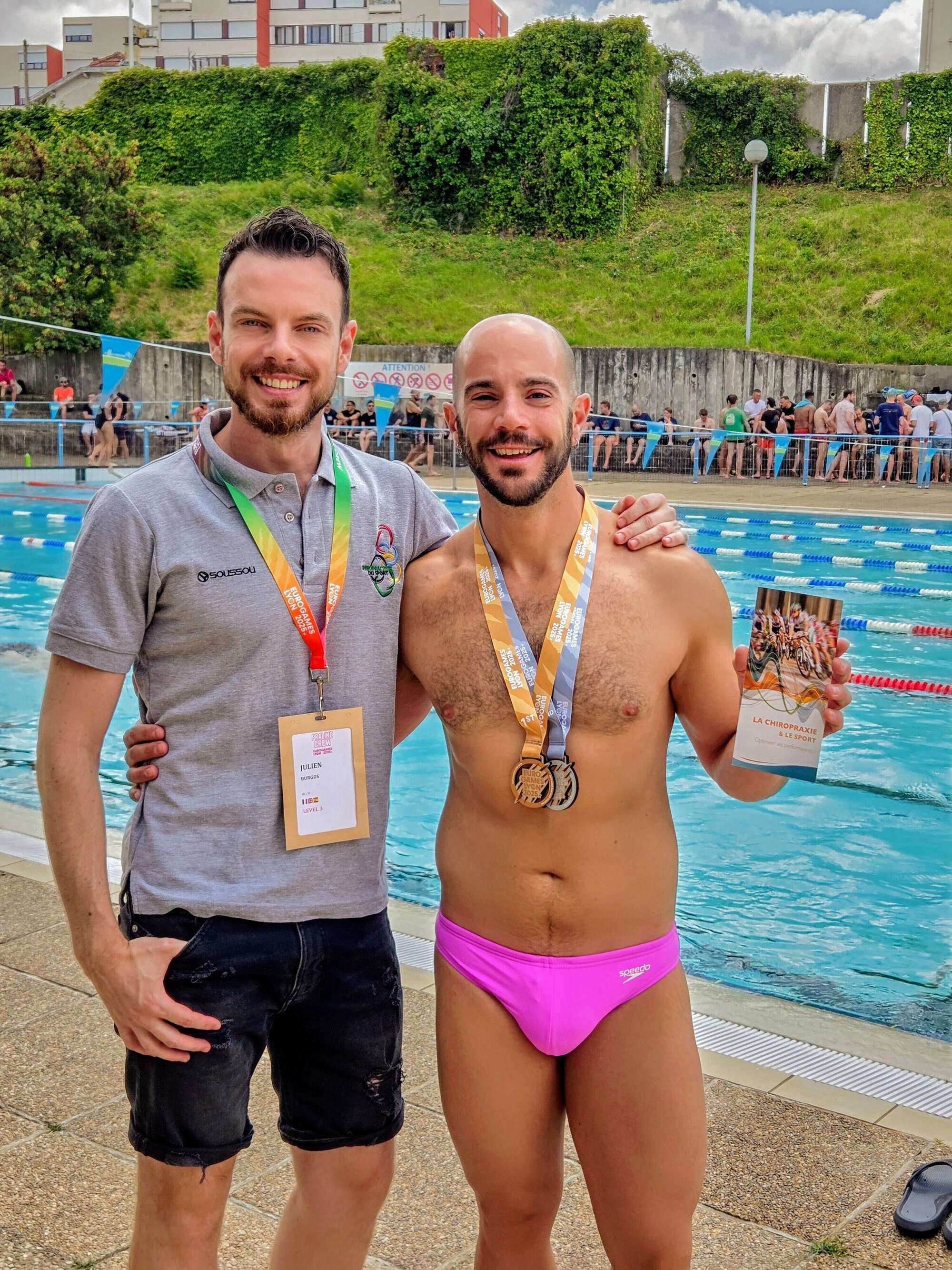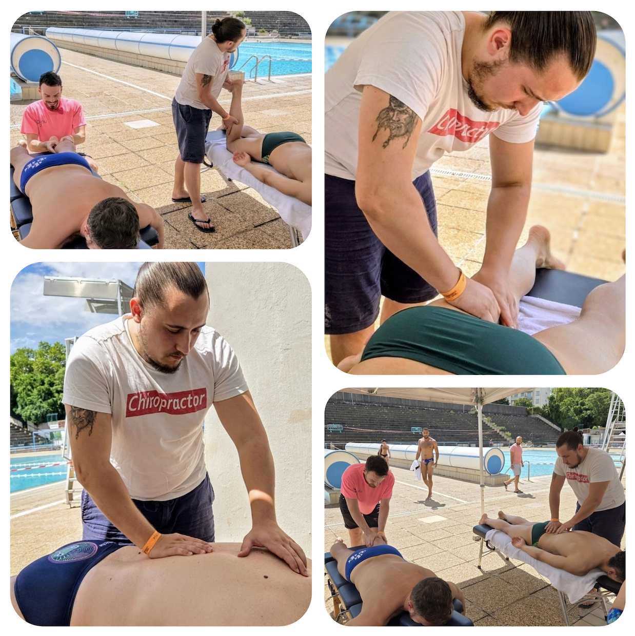 J’ai eu le privilège de participer activement à cet événement aux côtés de mes collègues chiropracteurs (notamment Killian ALEXANDRE avec qui j’étais en binôme pour les compétitions de natation). Ensemble, nous formions une équipe engagée à soutenir les athlètes tout au long des compétitions.