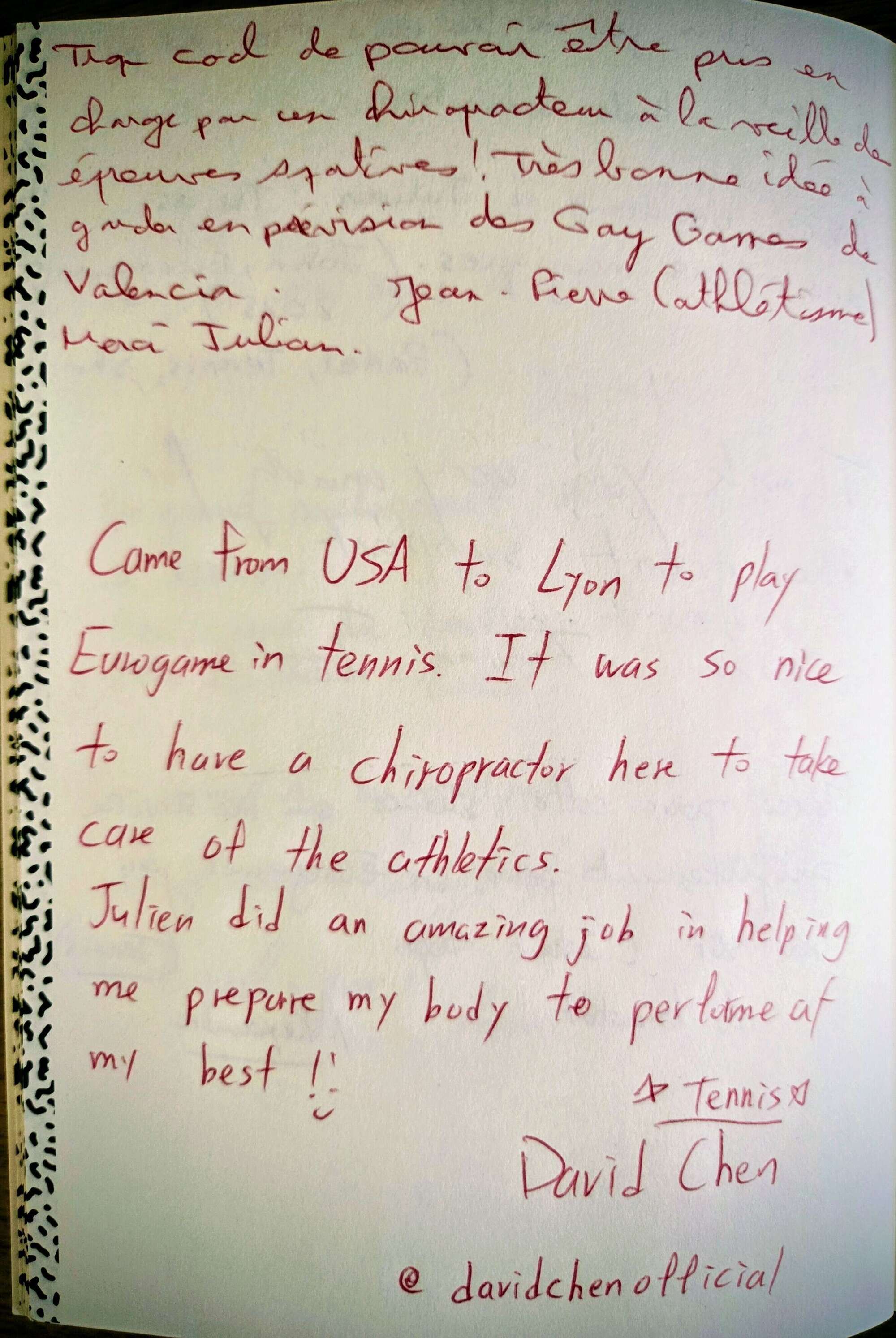 Je suis fier d’avoir contribué aux côtés de mes collègues chiropracteurs et d’avoir été témoin de ces moments de partage, de célébration et de solidarité. Nous avons tous hâte de voir comment ces valeurs continueront d’influencer le monde du sport dans les années à venir.